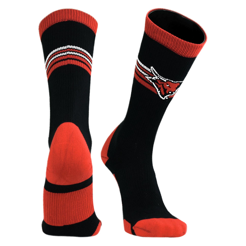 SOCKS BLK/RED CREW BULL LOGO W/ STRIPES