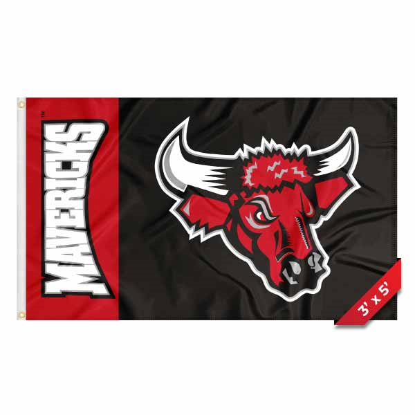 FLAG RED/BLK 3'X5' VINTAGE MAVERICKS BULL LOGO