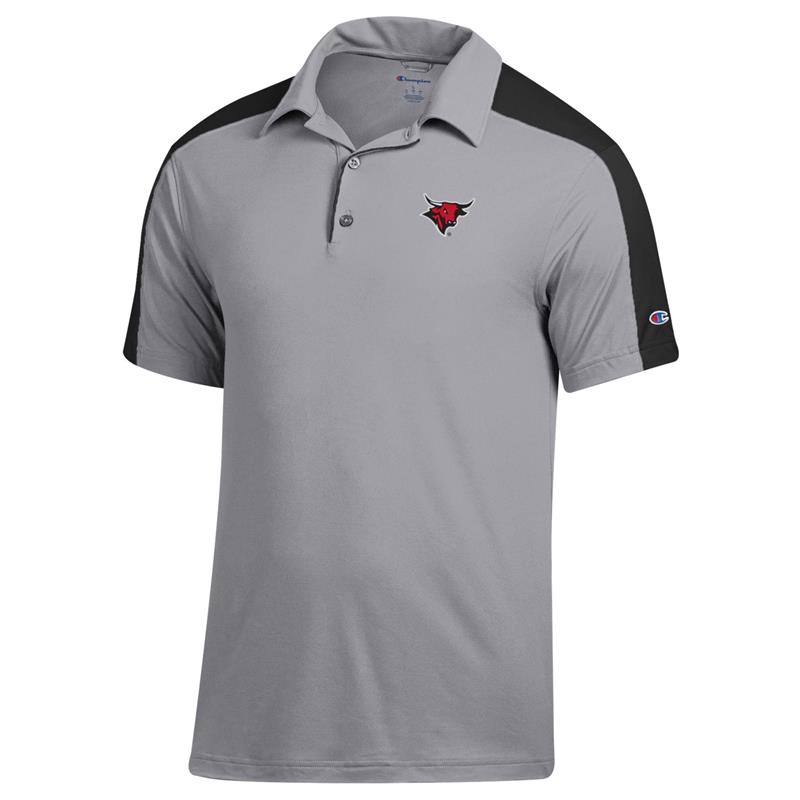 POLO MENS GRY WITH BLK ON SLEEVES BULL LOGO CHAMPION