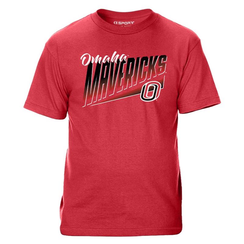 TSHIRT RED OMAHA (IN SCRIPT) MAVERICKS (ANGLED) O LOGO